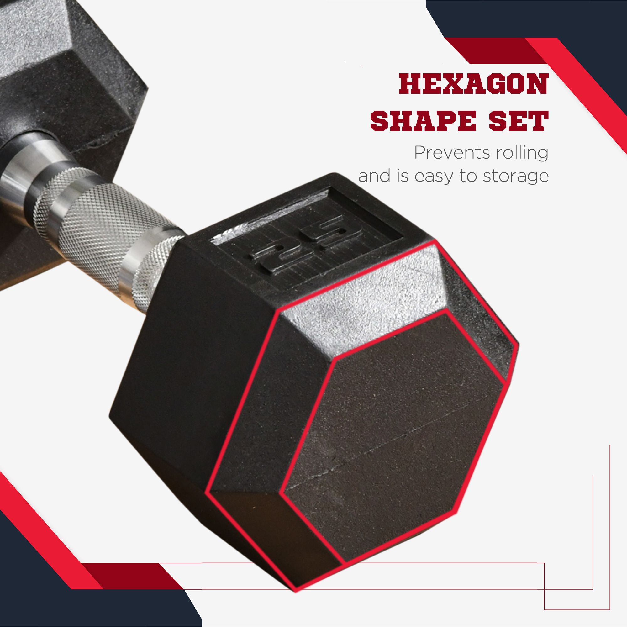 • Hexagon Shape Set: This dumbbellsweights set strengthens and exercises your arms, shoulders, back and more. The hexagon shape helps prevent the weights from rolling during your workout or while in storage.